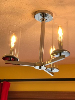 [This review was collected as part of a promotion.] So easy to install and your able to get the brightness you need by using different wattage of bulbs. You can make this chandelier higher or lower depending if it's going over a dining room table or in a hallway as I have done with mine. Beautiful chrome finish and beautiful glass covers to the light bulbs. You must be careful though because the glass is just literally placed onto the light bulb holder, nothing locking in the glass or holding it down. Also, cleaning or white glove installation is a must, it's very easy to see all of your fingerprints on the chrome and glass. Very sleek and modern design but not obnoxious or gaudy. I am super happy with this piece.