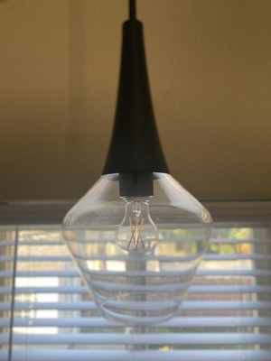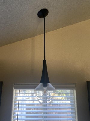 [This review was collected as part of a promotion.] Simple yet modern matte black pendant light. This light fixture is easy to install. It comes with 3 rods but we only used one rod. This is hanging over our small breakfast nook. The glass is frosted. It provides ample light and takes a regular light bulb.