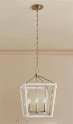 [This review was collected as part of a promotion.] This large sized pendant hanging light is a show stopper. It is a big, bright statement piece that upgrades the room instantly. It looks classic and timeless yet still modern. We went with the white and gold which is a calm champagne gold. It has removable glass panes which is great for design choices, for now we have the glass out. The light is heavy duty and gorgeous.