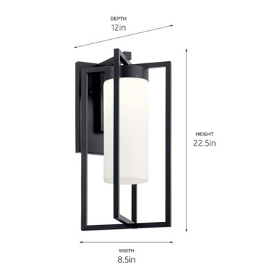 [This review was collected as part of a promotion.] This Kichler Lighting Drega 22.5" 1 LED Wall Light with Satin Etched Glass Black is HUGE! Much larger than I expected. It honestly looks a little too large for my home, but would look amazing on a higher end two or three story home. Easy to install and nice bright light.