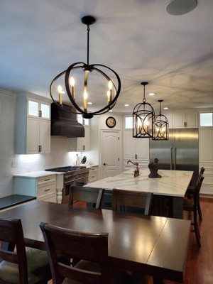 We recently purchased our new home and the previous owner must've loved her "eat-in" kitchen light because all I had in its place was a white plate cover. LOL Needless to say...I had to go on the search to find a fixture that would compliment yet not overtake the lights over my countertops. Mission accomplished with this gorgeous fixture! It's the perfect size and looks like it has always been a part of the light package in my kitchen. I couldn't be happier! According to the previous owner, the two lights over the countertops were very high dollar fixtures. I feel that this light looks like I spent way more than I actually spent. Visitors always remark on its exquisite look. VERY HAPPY!