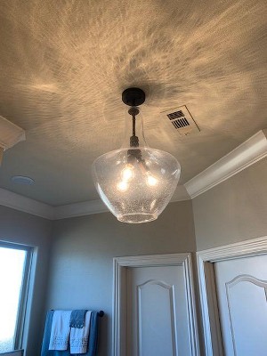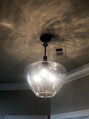 [This review was collected as part of a promotion.] Easy to install came with simple instructions packaging was minimal thankfully looks great I could not have picked a better one the tiny bubbles in the glass let off small glimmers of lights it's so romantic