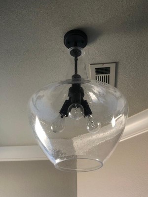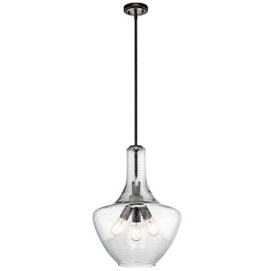 Everly 22.75" 3 Light Bell Pendant Clear Seeded Glass Brushed Nickel