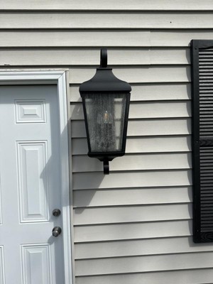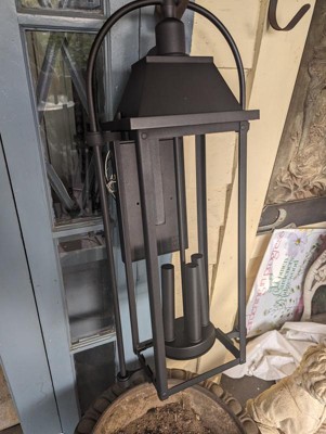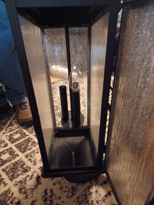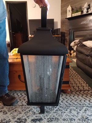 [This review was collected as part of a promotion.] This outdoor lantern light fixture turned out to be a lot bigger than I expected but it looks great on the side of my house. It was very easy to install and seems very sturdy. I has three candelabra type light bulbs on the inside that provide a good ambient lighting for outdoor use. I am very pleased with both the quality and the aesthetic of this fixture.