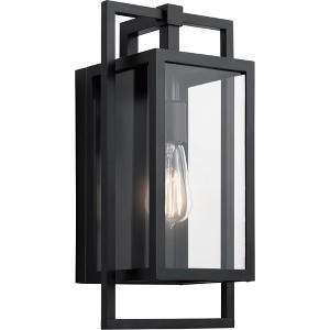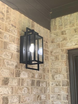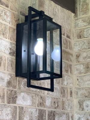 The Goson 16" 1 light wall light honors the simplicity of luxe industrial-style lighting. Its Black geometric design takes its cues from old factory windows. Paired with Clear Glass, it produces a fixture that's handsome and refined. Material: Aluminum, Finish Color: Black, Width: 8", Height: 16", Depth: 7", Height From Outlet Box: 8.25", Backplate Width: 6", Backplate Length: 10.75", Lamping Type: Incandescent, Number Of Bulbs: 1, Wattage: 100 Watts, Moisture Rating: Wet Rated