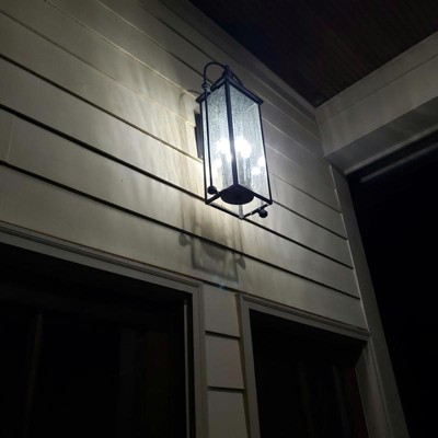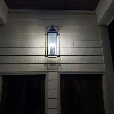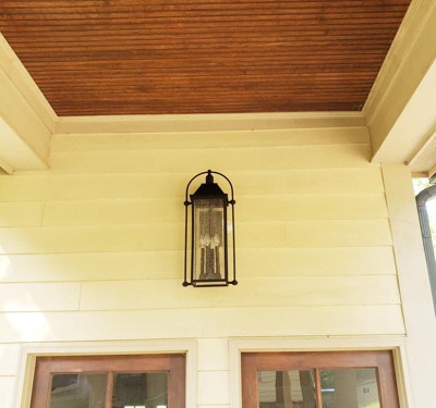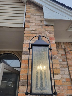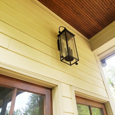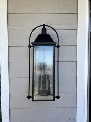 [This review was collected as part of a promotion.] The Harbor Row 4-light outdoor wall light was a straightforward installation and directions were thorough. The light is tall, coming in at 28.75" and between the bulk and height at which I was installing this, installation ran smoothly with help for the second part of the installation when I had my partner hold the inner frame with the glass panels, while I was attached it to the already installed base frame. We have a large, open area above our doors and our previous lighting got swallowed up by the space, so the taller height of this light helps fill the space. The design is perfect for my farmhouse style and I absolutely love the gorgeous clear seeded glass panels. This would look great in areas that can handle taller lighting such as on the sides of a garage or doors. This lighting is offered in multiple sizes if this height doesn't work for your needs or you need additional heights and lighting options for around the house. Highly recommended.