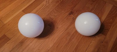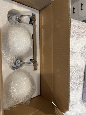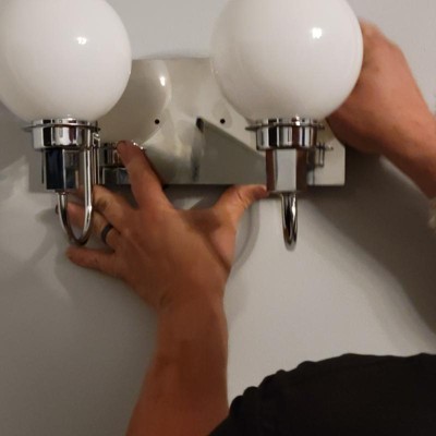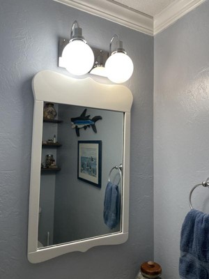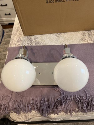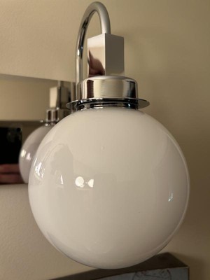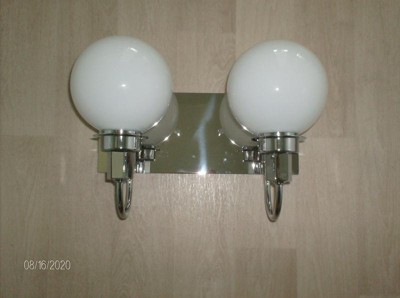 [This review was collected as part of a promotion.] We installed this 2-light fixture in our half bathroom. The shiny, chrome finish and opal, frosted glass globes go perfectly with the rest of the bathroom's beach theme. It was a little tricky to install since we live in an older house and we had to screw it into drywall and not into a junction box. It would be nice if you included drywall anchors as well.