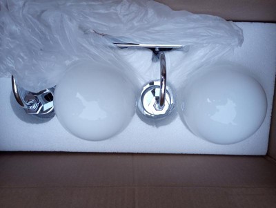 [This review was collected as part of a promotion.] I have not yet installed this light, but I love the look and functionality of it. We are remodeling our vacation home and will be using this in the coming months in a small bathroom. It will be a great fit for our needs. I love the large globes and silver finish. It was packaged exceptionally well and arrived damage free.