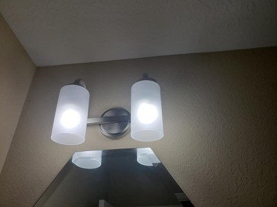 [This review was collected as part of a promotion.] We are currently doing a bathroom remodel so this was a god send! I thought this 2 piece vanity light set will be ideal to match the new vanity base and mirror for our smaller bathroom. It has a gorgeous brushed nickel finish that matches the new brushed nickel faucets we are installing in the vanity sink and showerhead. The light fixtures with the etched glass is a nice modern design with clear lighting. Definitely a great addition to our bathroom family!