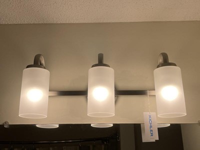 [This review was collected as part of a promotion.] Replacing our bathroom light fixture, husband was able to do this, he has professional experience. The Kennewick - 3 Light Bath Vanity - with Traditional inspirations is a perfect match for our bathroom, the brushed nickel finish and simple line are perfect over our detailed mirror. The 3 frosted glass lights as a soft natural light. The 22 inch wide size works perfectly over our 24 inch wide Mirror. The fixture came assembled do it was a simple install for my husband. The glass is held in place by the bulbs which is easy to on. That really was the only “assembly”, place the glass over the bulb docket & screw the bulb in.