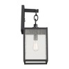 Collection: Lahden, Material: Aluminum, Finish Color: Black Textured, Width: 9", Height: 21.75", Depth: 10", Height From Outlet Box: 5", Backplate Width: 9.75", Backplate Length: 6.5", Lamping Type: Incandescent, Number Of Bulbs: 1, Wattage: 150 Watts, Dimmable: Yes, Moisture Rating: Wet Rated, Desc: Dress up your outdoor space with the unique, visually impactful look of the Lahden collection. Designed with a substantial chain-link design detail and on-trend rectangular silhouettes, Lahden brings a touch of elegance to luxe lodge spaces. Its clear seeded glass provides a beautiful, ambient light and can be removed for ease of cleaning or replacement. ,