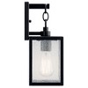 Collection: Lahden, Material: Aluminum, Finish Color: Black, Width: 5", Height: 12.25", Depth: 5.75", Height From Outlet Box: 3", Backplate Width: 5.75", Backplate Length: 5", Lamping Type: Incandescent, Number Of Bulbs: 1, Wattage: 75 Watts, Dimmable: Yes, Moisture Rating: Wet Rated, Desc: Dress up your outdoor space with the unique, visually impactful look of the Lahden collection. Designed with a substantial chain-link design detail and on-trend rectangular silhouettes, Lahden brings a touch of elegance to luxe lodge spaces. Its clear seeded glass provides a beautiful, ambient light and can be removed for ease of cleaning or replacement. ,