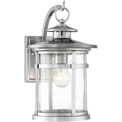 The Lyndon(TM) 15in. 1 light wall light features a classic look with its Architectural Bronze(TM) finish and clear seeded glass. The Lyndon(TM) wall light works in several aesthetic environments, including transitional and nautical. Material: Aluminum, Finish Color: Brushed Aluminum, Width: 6", Height: 15", Depth: 8", Height From Outlet Box: 5", Lamping Type: Incandescent, Number Of Bulbs: 1, Wattage: 100 Watts, Dimmable: No, Moisture Rating: Wet Rated