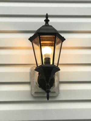 With its timeless colonial profile, the Madison is the perfect line of outdoor fixtures for those looking to embellish classic sophistication. Because it is made from cast aluminum and comes in an extensive amount of different finishes, this Madison 1-light wall lantern can go with any home decor while being able to withstand the elements. It features a Black finish with clear beveled glass panels. The Madison wall lantern uses a 100-watt (max.) bulb, measures 9 in. wide by 22in. high, and is U.L. listed for wet location. Back Plate Height: 6.00 Back Plate Width: 4.00