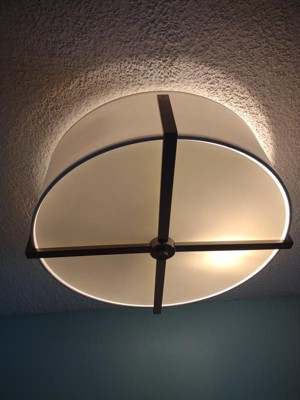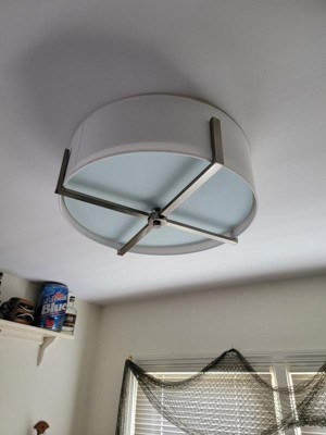 [This review was collected as part of a promotion.] What an absolutely stunning 4 light ceiling light which gives my traditionally decorated room a contemporary and updated feel. Detailed instructions for installation are included, or they can be downloaded from the web site along with the specifications. All required parts are included except for the 4 bulbs needed for illumination. The diameter of 20", height of 8.25" and the fact it is a flush mount make it big enough to make a statement, but not so big that it dominates the room. The white fabric shade sets off the whole thing perfectly and the white glass bottom helps to soften the light. The classic pewter metal uprights add an element of drama to the overall effect. I am particularly impressed at the ability to add a dimmer switch which is sold separately. I intend to look into this in the very near future as this would be the icing on the cake as far as this beautiful piece of equipment is concerned. Very happy.