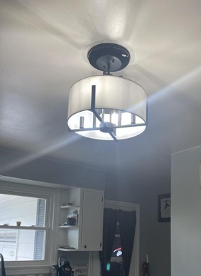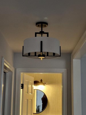 Malen 15.5 Inch 4 Light Semi-Flush with White Fabric Shade in Black