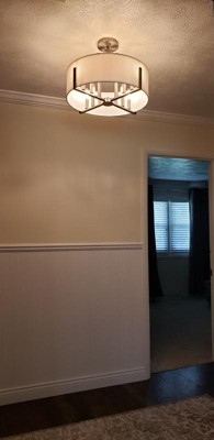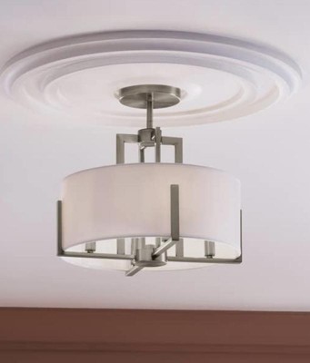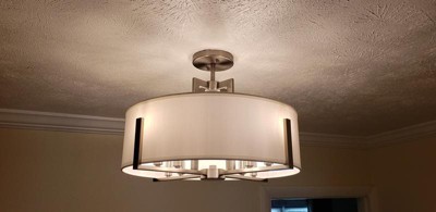 [This review was collected as part of a promotion.] Kichler Malen 8 light Semi Flush with a white fabric shade is a simple but elegant light fixture. It gives off just the right amount of light in the dinning room. This fixture would also be great in an entry way or a bedroom. I have three other Kichler fixtures in my home (Luella and Shailene collections) and they all look great together.