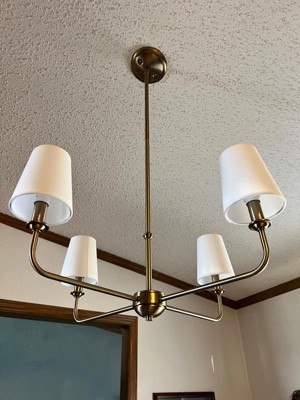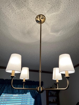 [This review was collected as part of a promotion.] I installed the Pallas 25 In. 4-Light in our dining room, it fits the area nicely. I noticed a few minor details / flaws. The down rod metal colors did not match and the lamp shades were loose fitting.