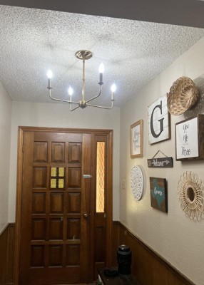 [This review was collected as part of a promotion.] This chandlier is perfct for our home. We needed a light in the foyer as it was so dark. This light was perfect. It added just the right amount of light to a dark space. The shades on the lamp add a touch of elegance.
