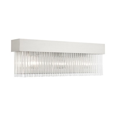 Pim 34" 4 Light Vanity Light with Satin Etched Cased Opal Glass in Polished Nickel