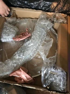 [This review was collected as part of a promotion.] All I can say is WOW, from the packing to the finished is just wonderful. Everything was wrapped separately and safely, nothing was broken or chipped. We do not have it up yet because we are painting the dining room, so in the spring I can update with pictures of it up. But I had to put some together to see how nice it is. It comes with metal and glass sticks. The silver sticks have clear glass balls hanging from the bottom. These surround the six lights. I am sure when the light hits them, it will look so pretty.
