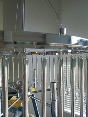 [This review was collected as part of a promotion.] Upon opening this fixture I was a little intimidated with all the packaging. Each piece was individually wrapped In plastic and tissue paper. So all though it may take awhile to unwrap everything, in the end that additional packaging was well worth it. It’s nice to know they took the time and care to package this to ensure nothing comes damaged or scratched. With the fixture finish being chrome the slightest scratch would have shown up. The fixture had a mixture of crystal and chrome Hanging stems with alternating hanging crystal balls. Each piece had such expensive looking quality. The ring that holds the stems and crystals is held up by cables. The cables were nice and taut which made it have a more polished look. The crystal finial was a beautiful finish to this chandelier. Installation was easy and flawless and went up in no time. When it came to illuminating this fixture, I was blown Away with how the light hit the crystal and chrome steams. It exudes such lux quality and will surely be A statement and focal piece to any interior space.