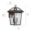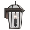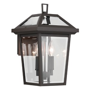 Inspired by the traditional lantern shape, the Regence outdoor wall light features thick, beveled clear glass. A textured black finish completes this vision of luxury. For maximum stability, its Rigid Stay Straight Stem keeps the lamp holder securely in place. Material: Aluminum, Finish Color: Olde Bronze, Width: 8.5", Height: 14", Depth: 9.5", Height From Outlet Box: 6.25", Backplate Width: 7.25", Backplate Length: 5.5", Lamping Type: Incandescent, Number Of Bulbs: 2, Wattage: 60 Watts, Moisture Rating: Wet Rated