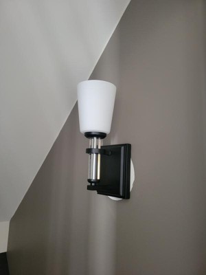 [This review was collected as part of a promotion.] Received the Rosalind 12.5 In. 1-Light Black Updated Traditional Bathroom Vanity Light with Satin Etched Cased Opal Glass. This looked so elegant in my old farmhouse bathroom. I really liked the black finish. It was easy to install and I have received several compliments on it. It was just the right size, not too big or too small. I really liked the glass shade but wish it came with the bulb.