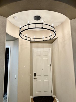 [This review was collected as part of a promotion.] LOVE this chandelier! It’s so pretty and it’s BIG! Absolutely the focal point in my entryway and living area. We assembled it and then we had a handyman hang it due to a 20 foot ceiling- no problems. It gets lots of attention from visitors. Beautiful light at night through our large front window. This is definitely a statement piece in my home. The finish and quality are excellent as well. Would highly recommend this product if you have large ceilings and open space.