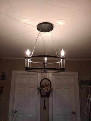 [This review was collected as part of a promotion.] This is a beautiful Kichler Rosalind 3-light chandelier. We chose to install this in our kitchen. The installation was easy for me. My wife helped a little. It takes candelabra type bulbs. I chose to use 60 watt bulbs for brightness.. The maximum hanging height is 2 ft. It is a beautiful matte black finish. I think it was a beautiful addition to our kitchen. We have received many compliments on it. This is a super high quality light fixture. I would definitely recommend Kichler lighting to everyone.