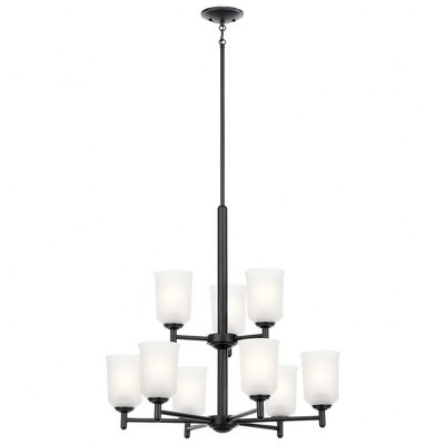[This review was collected as part of a promotion.] I got the Shailene 5-Light Black chandelier for my dining room and I am so glad I did. The chandelier design is simple yet that is what makes it look so nice. It has a contemporary elegance feel to it that will go great with any home interior design. It is a 5 light chandelier that comes with satin etched glass shades that produce a warm yet bright light. The fixture does not include the bulbs but does work well with incandescent or LED bulbs. I do have a very high and sloped ceiling in that room so I was very happy that this chandelier was perfect for it. The Chandelier has a chain connected to the base which makes installing it in a sloped ceiling possible. It does also come with four extenders that help you customize its length, so how low or high you want it to hang. Beautiful chandelier that will surely bring your space together. Highly recommend this one.