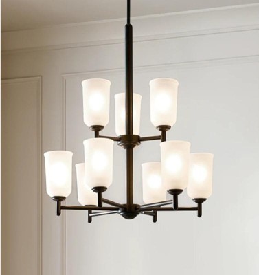 [This review was collected as part of a promotion.] The Shailene 9-Light Black 2 Tier Transitional Dining Room Chandelier is beautiful. It fits perfectly with our other lighting features. The frosted glass gives it a nice touch and mutes the lighting just enough compared to clear glass. It makes the space look elegant. It was packed very well and nothing came broken, it would be nice for bulbs to be included.