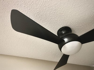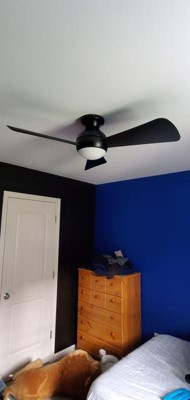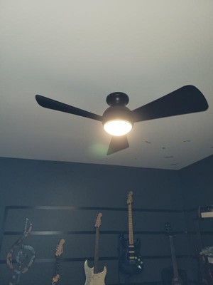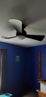 [This review was collected as part of a promotion.] The Sola LED fan was just what we were looking for when we decided to get a new fan for our bedroom. The flush mount is a teue flush mount with no gap. It is a very quiet fan that pushes good air. It only has 3 fan blades but it still works juat as well as a 5 fan blade,especially in our bedroom. I like that its an LED light so i do not have to worry about replacing bulbs. I like that it does not use a switch but comes with a wall remote control function. You can choose fan speed and turn the light on and off with a push of the button. The fan has 3 speeds and the light is bright. The only issue I've had is that the light randomly turns on and we have no idea why.