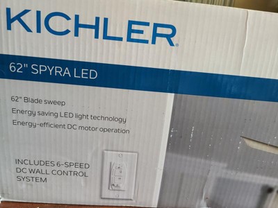 [This review was collected as part of a promotion.] I love our Spryra LED 62" Fan in brushed nickel. The install directions were easy to read and the fsn was easy to install. I love that not only does it have an LED Light, but also a 6 speed control wall panel. I love how sleak and modern it looks in my living room.