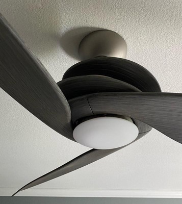 [This review was collected as part of a promotion.] I love this fan. It is really unlike anything I had seen before and it is truly an accent piece in the room. The dark driftwood blade finish is beautiful along with the brushed nickel. I have installed many fans in the past and this one was fundamentally like the others except when it came to the blades. It was a little different when trying to get the top spiral to fit right but once i got the hang of it they were easy. The wired switch/remote works great and has six setting for each the light and the fan speed which is visible with small LED lights next to the controls. The fan moves a great deal of air and works great in my sunroom. The LED light isn't my favorite for lighting the room (I have LED recessed lights for that) but adds a nice low level light when the situation calls for it. Overall this fan exudes quality and has been a great addition to our sunroom.