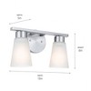 Collection: Stamos, Material: Steel, Finish Color: Brushed Nickel, Height: 8", Length: 13", Depth: 5", Height From Outlet Box: 5.5", Backplate Width: 5", Lamping Type: Incandescent, Number Of Bulbs: 2, Wattage: 60 Watts, Moisture Rating: Damp Rated Material: Steel, Finish Color: Brushed Nickel, Height: 8", Length: 13", Depth: 5", Height From Outlet Box: 5.5", Backplate Width: 5", Lamping Type: Incandescent, Number Of Bulbs: 2, Wattage: 60 Watts, Moisture Rating: Damp Rated