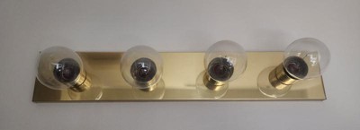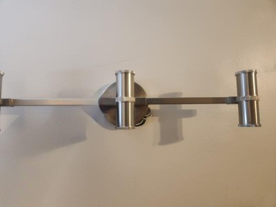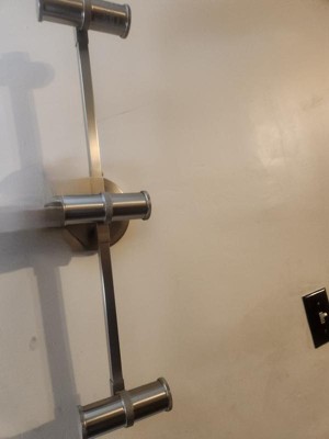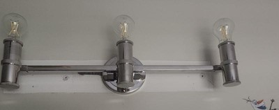[This review was collected as part of a promotion.] This brushed nickel three light vanity was easy to install and is simple yet elegant. I have my vanity that I wanted a light on the wall for and this was perfect. It gives off the right amount of light without causing any shadows or being too bright.