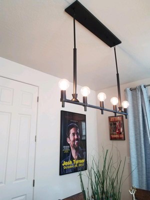 [This review was collected as part of a promotion.] This chandelier is very chic and modern. The black metal is very industrial and goes well with my aesthetic. I love the clean lines and how it is simple yet really interesting. The length is the perfect size for over my dining table and the number of bulbs allows for great even distribution of light. The recommended bulbs look great. It's a great addition to my dining room!