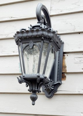 [This review was collected as part of a promotion.] I love this wall light .It is very beautiful wall light ,antique design and black color looks amazing outside. It is very well made light ,amazing quality, heavy light that was vey easy to set up, for us took very short time to put together. It comes with all instructions and hardware that you will need while installing. We are even thinking of getting the same one to match outside.