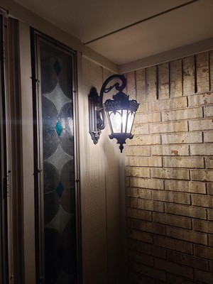 [This review was collected as part of a promotion.] We really love this outdoor porch light. My husband was able to install it in about 15 minutes. It has very heavy duty brackets and is nice and sturdy on our brick wall. The black texture is very good looking and the design of the lamp is quite elegant. We now need to get another one for the opposite side. Very good lamps.
