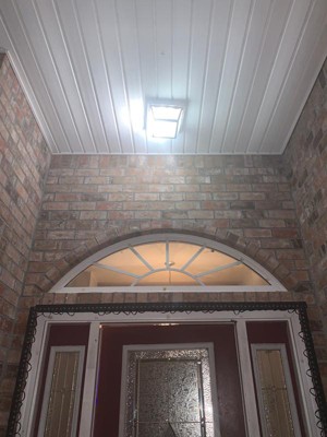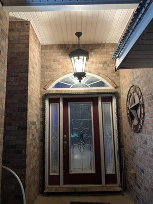 [This review was collected as part of a promotion.] It is amazing how small changes makes a huge difference. The before and after photos of the lighting at our front door is incredible. We have a brick home and this light pendant is absolutely perfect!