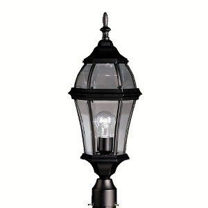 With its tall and intricate design, the Townhouse(TM) Collection adds classic form to Kichler's expansive assortment of decorative outdoor lighting. Made by the finest craftsmen in the industry, each piece is formed from cast aluminum and is U.L. listed for wet location, ensuring these high quality fixtures will continue looking fabulous for years to come. The 24 in. high, 1-light post light is a wonderful piece that features our Black finish with clear beveled glass panels, which uses a 100-watt (max.) bulb that accentuates the luster of your home with zeal. Post Not Included.