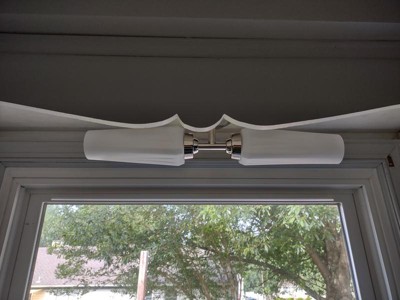 My review is on the Truby 19.75" 2 Light Vanity Light. This is the perfect light for our newly remodeled bathroom. We wanted to update our second bathroom and this light was just what we were looking for. It looked like it would have given out a really clean bright light, but when I unpacked it, the glass on the one side was cracked (see third picture - cracked glass) . The quality of this fixture was very good and it was packed really well, that is why I couldn't understand why it was cracked.