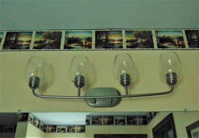 [This review was collected as part of a promotion.] Love this Kichler - Valserrano 33.50" 4 Light Vanity Light Clear Seeded Glass Brushed Nickel. Was easy to install. Looks beautiful in our bathroom. Glass and finish is beautiful.