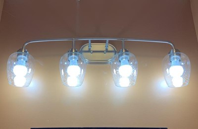 [This review was collected as part of a promotion.] Beautiful, provides nice lightingI have to say that this beautiful 4 light vanity fixture completed the look of a bathroom remodel. We recently had the whole bathroom done, countertops, fixtures, etc. There was one thing missing. The previous light fixture took away from the remodel since it no longer matched. We replaced it with this one and it looks beautiful. It provides nice lighting no matter what bulb you choose to use. Installing this was easy with the easy to read, easy to follow instructions. We had it up in no time. I will be redoing my 4 other bathrooms and will be purchasing more of this same fixture since we like to have everything uniform. I highly recommend, you will not be disappointed.