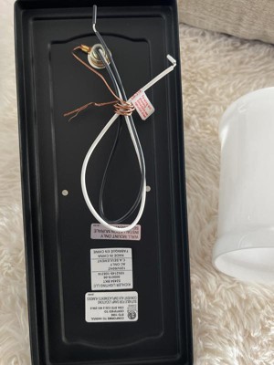 [This review was collected as part of a promotion.] This Vetivene sconce is quite pretty and kind of a unique looking fixture. It’s very easy to install. Instructions were clear, and easy to follow. There are very little parts included. I really like the textured black metal with white glass. It fits well with our modern farmhouse decor; however, it could fit in a variety of other styles as well.