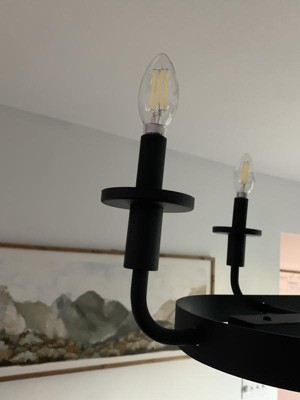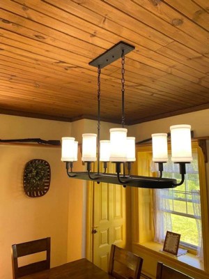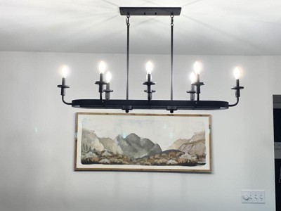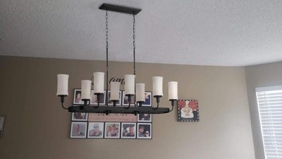 [This review was collected as part of a promotion.] The black iron look and candles take our dining room experience to a whole other level. It's light was fairly easy to install, was a great price (compared to other sites) and goes with our farmhouse ambiance.
