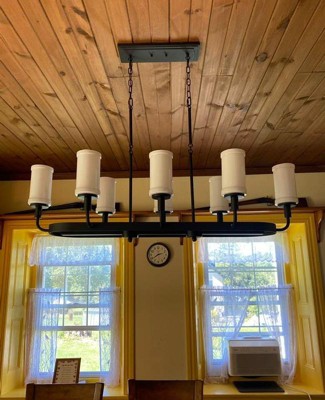 [This review was collected as part of a promotion.] I recently replaced my dining room light with this chandelier and it is absolutely stunning! Installing this chandelier was super simple; the included directions were very detailed and helpful. The chandelier took under one hour to install. The chandelier instantly updated the look of my dining room. It looks great hanging over my dining room table! It added a farmhouse look to my space which is exactly what I was going for. The light is very stylish and modern looking. I love the textured black finish paired with the opal glass lights, it is truly beautiful! You can adjust its height to fit your preference on how high or low you want the fixture to go. You can also use the lights without the glass shades and use the 8 included candle sleeves instead but I chose to use the shades as I love that finished look. The 8 lights give off the perfect amount of lighting for my dining room space. The chandelier itself is high quality and well made. I have had numerous family members comment on my new chandelier and how great it looks. If you are looking for a beautiful high quality chandelier then I highly recommend this one by Kichler!