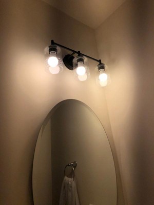 [This review was collected as part of a promotion.] Beautiful vanity light. Installation was typical with no added difficulty. The design of this fixture is light weight prior to adding the glass cylinders which made wiring and mounting much easier. I’d recommend using Edison style light bulbs as this fixture really puts out some serious lumens. This fixture is the perfect size for most vanities big and small for that reason. Love the seeded glass look!
