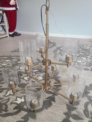 [This review was collected as part of a promotion.] This Winslow 9-Light Chandelier is very fancy & sophisticated. It comes with 9 lights and the chandelier itself has a brass finish. It matches many styles and colors. The chandelier isn't overly heavy but you will need assistance with you as you are installing it. I love the small globes that cover the light bulbs. It lights up the room perfectly. It goes very well in the dining room, sitting room or your hallway. This is a 2 tiered chandelier and just a beautiful chandelier.